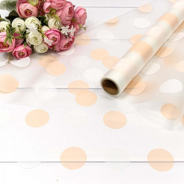 Стильно и недорого. Уникальный дизайн. Плёнка 0,58*10м прозрачная "Горох" 50мкм Персиковый 1/30 Тематика: Общепоздравительные