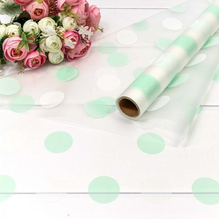 Стильно и недорого. Уникальный дизайн. Плёнка 0,58*10м прозрачная "Горох" 50мкм Салатовый 1/30 Тематика: Общепоздравительные
