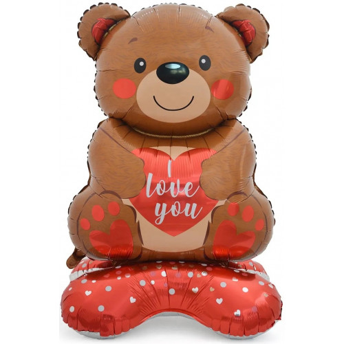 Стильно и недорого. Уникальный дизайн. Шар 3D (58''/147 см) Фигура на подставке, Мишка с сердцем, 1 шт. в уп. Тематика: Любовь, День Святого Валентина
