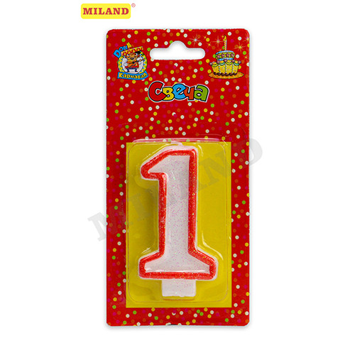 Стильно и недорого. Уникальный дизайн. Свеча для торта с красной окантовкой с блестками Цифра 1 Тематика :Общепоздравительные