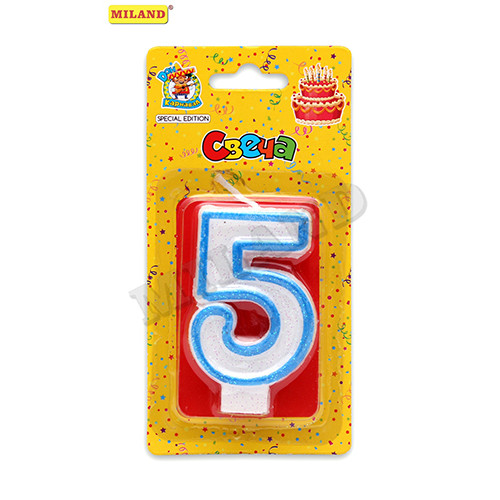 Свеча для торта с синей окантовкой с блёстками Цифра 5